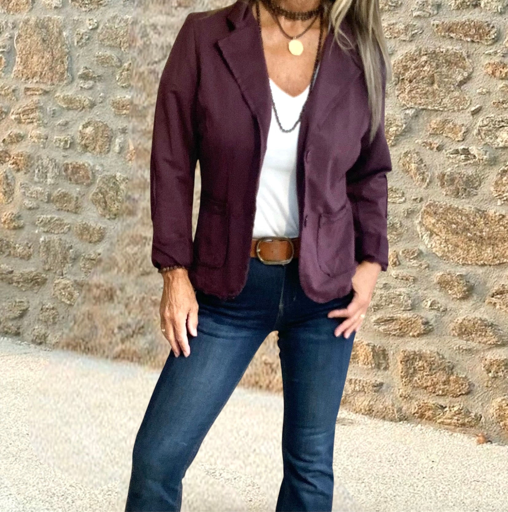 Una prenda versátil y cómoda que combina estilo y funcionalidad. Confeccionada en algodón suave y elástico, ofrece libertad de movimiento y un ajuste entallado. De corte recto, entallada, con solapa clásica, cierre de un botón.
