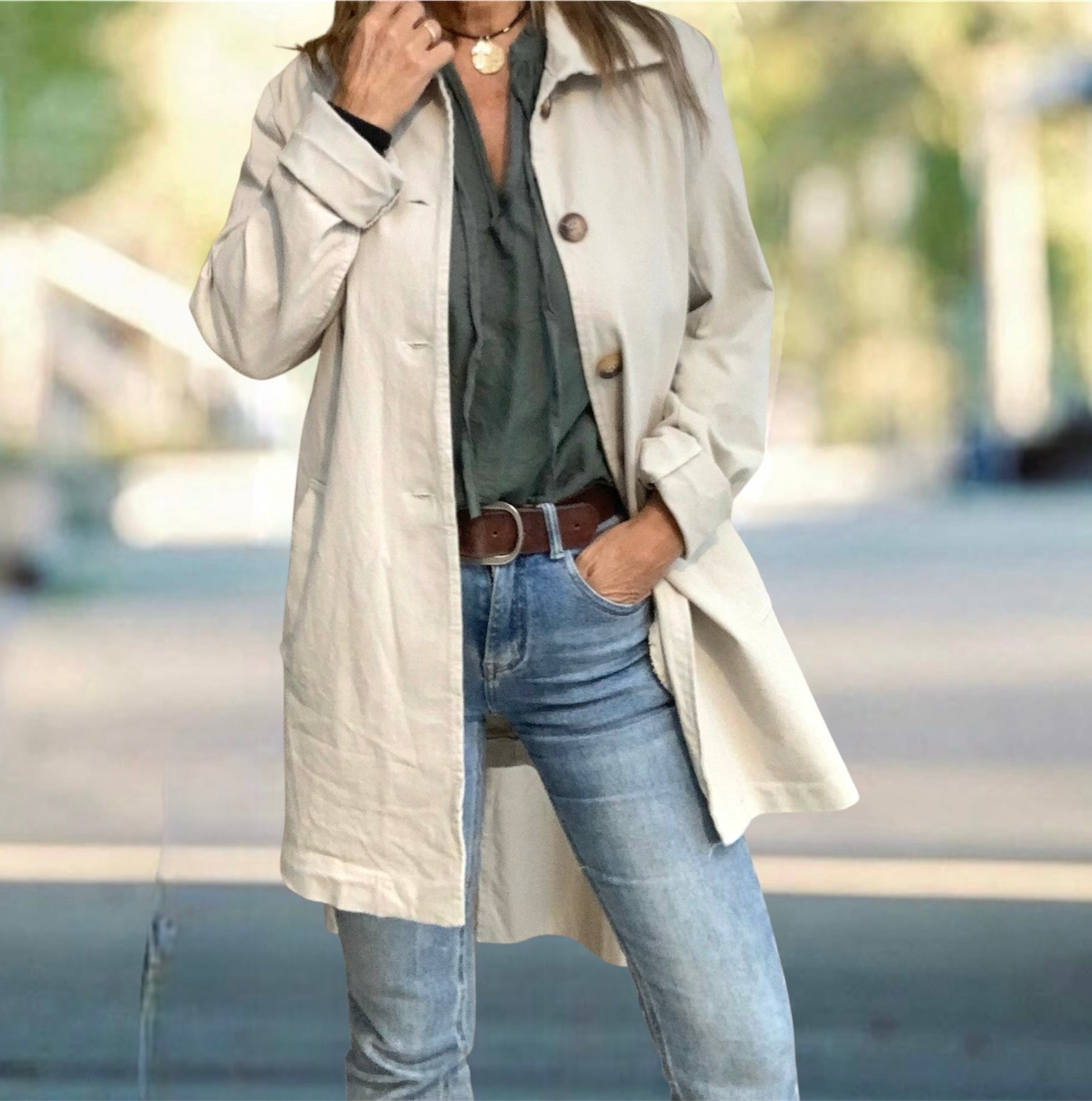 Blusa de manga larga en tejido satinado. Con cuello en V con pequeño volante y lazo decorativo, mangas largas con puño fruncido.